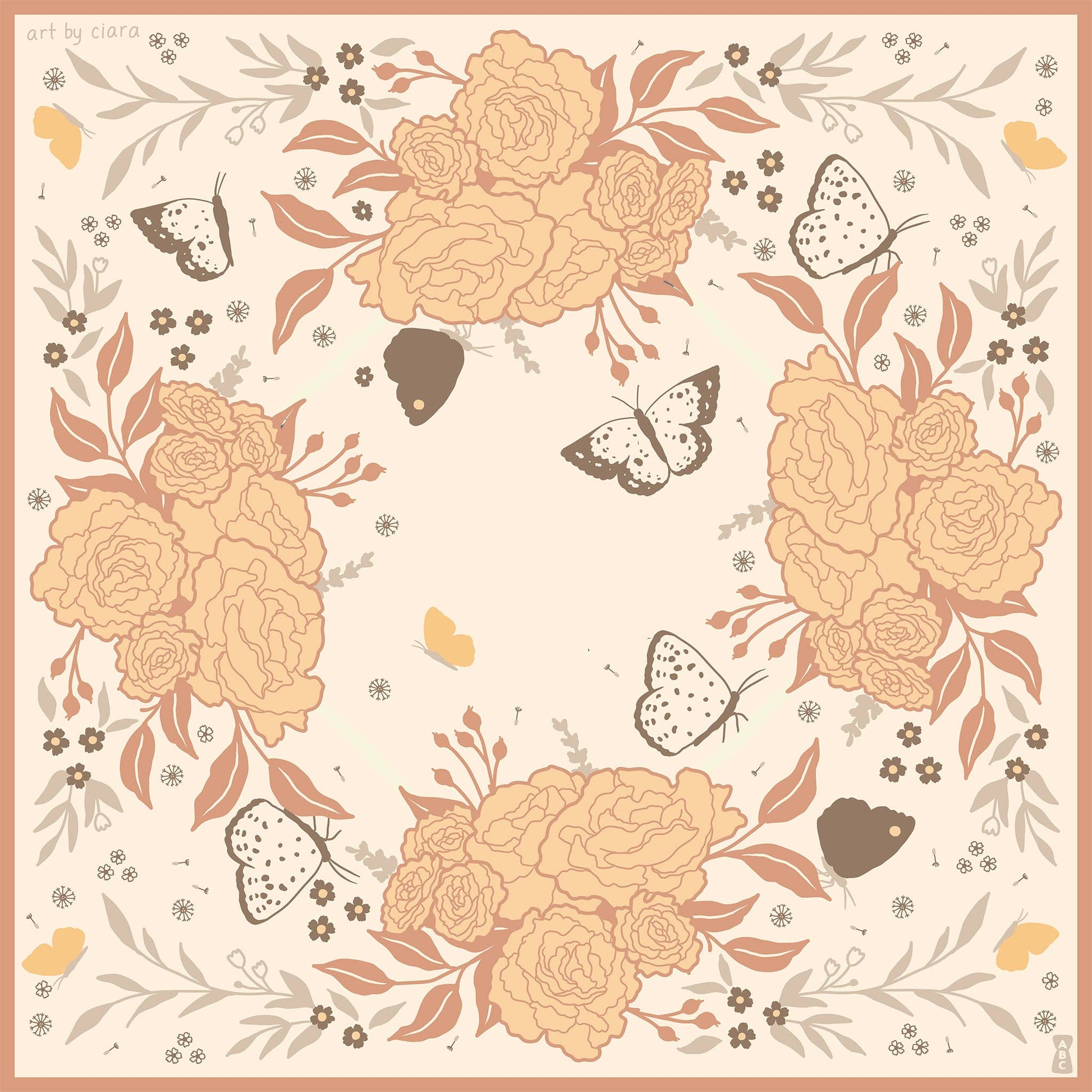 Peach Butterfly and Flowers Altar Cloth/Bandana